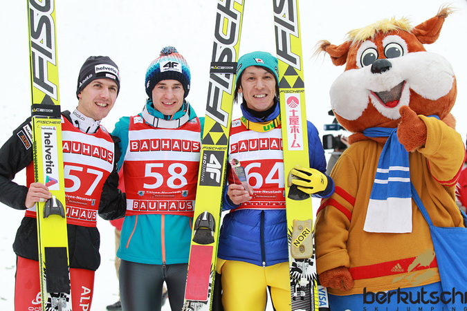 x December 13-15 kztt Titisee-Neustadtban folytatdott a sugrszezon. Ez egy visszatr helyszn, 2007 utn rendeztek itt jra vilgkupa-versenyt. Ammann mr a pnteki selejzetben is kivlan ugrott, a 2. helyen vgzett. Szombaton bemutatott egy 144 mteres replst, viszont a telemarkot nem tudta rtenni, gyhogy jelents ponthtrnnyal vghatott neki a msodik krnek. Egy ugyancsak kitn 138 mteres ugrssal a 3. helyet szerezte meg ezen a napon. Morgenstern nyert, Kamil Stoch lett az ezstrmes. Vasrnap Simon mg kzelebb kerlt a gyzelemhez: 142.5 s 141.5 mterrel a 2. helyig replt, csak az ellenllhatatlan formban lv Stoch tudta megelzni. Igaz, az els sorozatban voltak problmk az rkezssel Ammannl, de a lengyel gy is el kerlt volna, ha megcsinlja a telemarkot. Deht nem azt kell firtatni, mirt nem jtt ssze az arany, hanem ennek a msodik helyezsnek kell rlni, mert bizony ez egy rtkes eredmny az olimpia eltt... Engelbergben, hazai plyn - vagyis inkbb sncon - azonban nem jtt ssze a dobog, itt az utbbi vekben nincs szerencsje a szllel Siminek. Az els versenyen, szombaton a svjci ppenhogy tovbbjutott 28.-knt, de a msodik krben ugrott egy hatalmasat (134 m), amivel 17 helyet (!) lpett elre, gy vgl 11. lett. risi meglepets szletett, hiszen - tessk megkapaszkodni - a fiatal lengyel Jan Ziobro nyert, akinek ezeltt egy 9. hely volt a legjobbja a vilgkupban... Msnap az els sorozat utn nagyobb eslye volt Ammannak a rgta hn htott gyzelemre, a 6. pozicibl vrhatta a folytatst, de sajnos a htszl kzbeszlt s jelents visszaesssel mindssze a 17. helyet tudta megszerezni. Stoch gyztt, Wellinger lett a msodik, Ziobro pedig bronzot vihetett haza s ezzel bizonytotta, hogy az a bizonyos szombati siker nem csak a szerencsnek volt ksznhet.