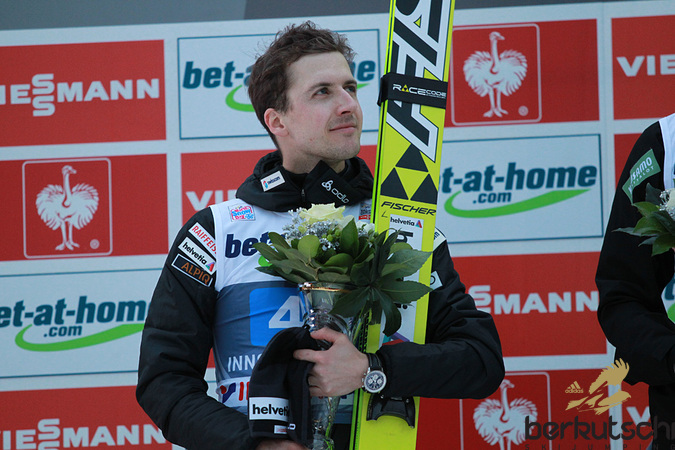 Elszr is, Ammann legyzte Diethartot s 2. lett. Msodszor, a szl s a stteds kzbeszlt, teht csak egy sorozatot tudtak megrendezni a Berg Isel sncon. Anssi Koivuranta lehetett a legboldogabb emiatt, mivel ugrotta a leghosszabbat s lete els versenyt nyerte sugrsban (korbban kivl szaki-sszetettes volt)... Az utols lloms, Bischofshofen eltt az sszetettben Diethart 10 pontos elnnyel rendelkezdett Simi eltt, mg Morgenstern 16 ponttal volt lemaradva llovas honfitrstl. 10 pont nem a vilg, a svjcinak lett volna eslye a gyzelemre, st! Ha Diethart nagyon elrontotta volna a versenyt, akkor mg Morgensternnek is. De a dolgok mskppen alakultak... Ammann rdekes dntst hozott, miszerint sem az edzseken, sem a selejtezben nem ugrik - kvzi pihennapot vesz ki -, ezzel pedig bevonzotta a bajt, hiszen mit ad isten, megint Dietharttal kerlt ssze a KO-sorozatban. Ezutn jtt csak a fekete leves: a zldfl ellenfl nem volt hajland hibzni, viszont Simon a 137.5 mteres replse utn nem tudta megcsinlni a telemarkot, amivel tulajdonkppen el is vesztette gyzelmi eslyt. Morgenstern ugyancsak szpet ugrott, s 4 pontra megkzeltette sszetettben, teht inkbb htrafel kellett figyelnie a msodik, mindent eldnt fordulban... Thomas Diethart magabiztosan nyert, rinthetetlen volt ezen a bischofshofeni versenyen, mg Ammann itt teljestett a leggyengbben - 'csak' 4. lett. Morgenstern a 2. helyet szerezte meg, Prevc harmadikknt vgzett ezen a napon.